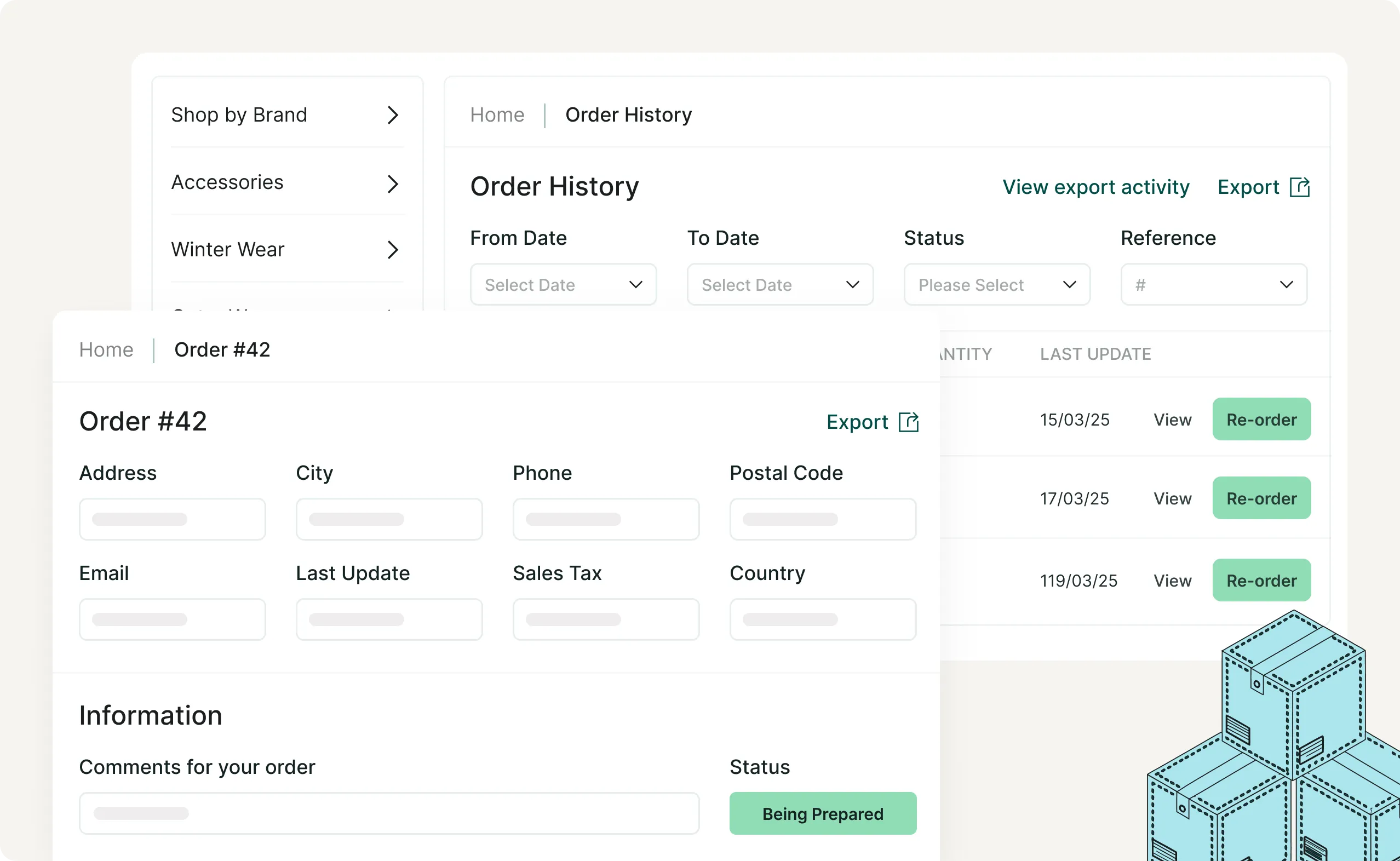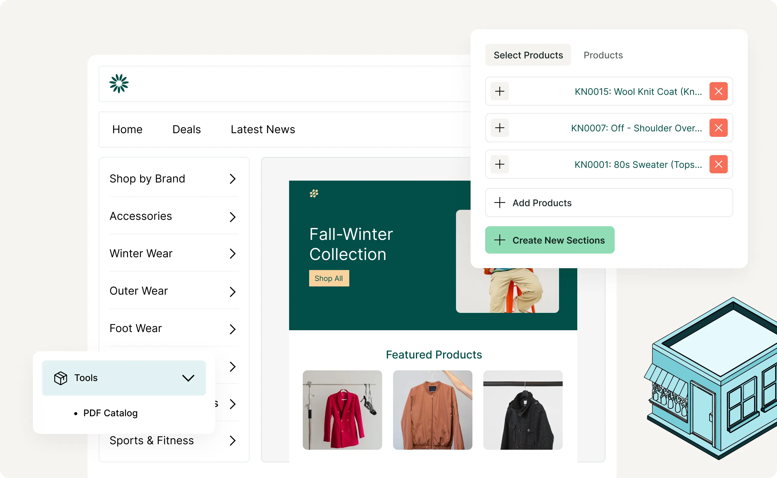 Create an access-protected ecommerce website. Mass-import and list your products with variants and inventory status.