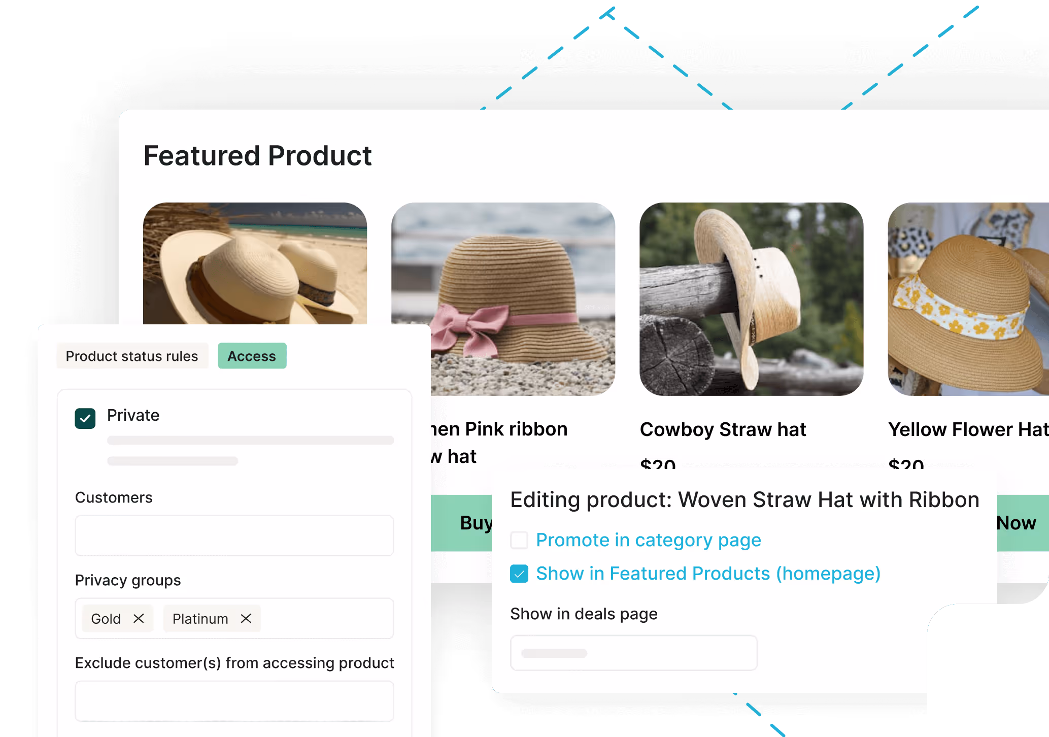 Control product visibility with private products, privacy groups, and personalized product categories.